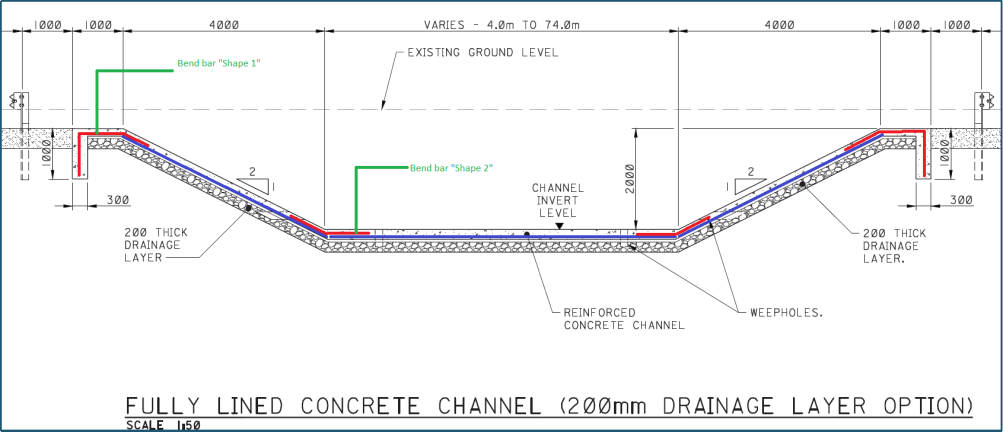 Al Yamama公司是建造该泄洪渠的施工方,在施工过程中,每天浇筑超过1500方的混凝土,这是沙特有史以来最快的渠道建设项目之一。整个项目超过1100万延米的GFRP筋材交付使用,大概82%的直筋和18%的箍筋。